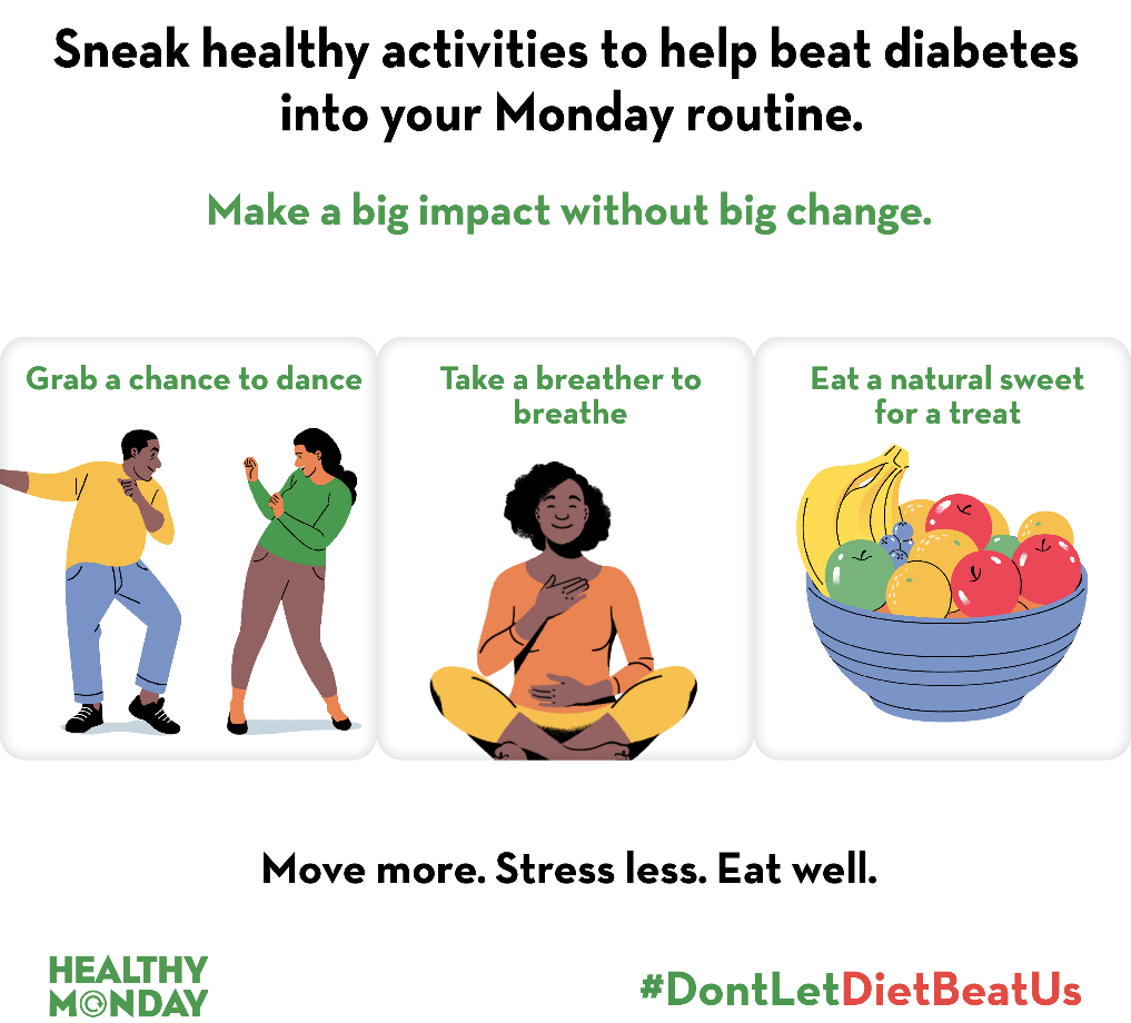 By incorporating healthier eating, physical activity, regular sleep, and mental health self-care practices into your weekly routine, you can better prevent or manage type 2 diabetes. Read more about diabetes and prediabetes.